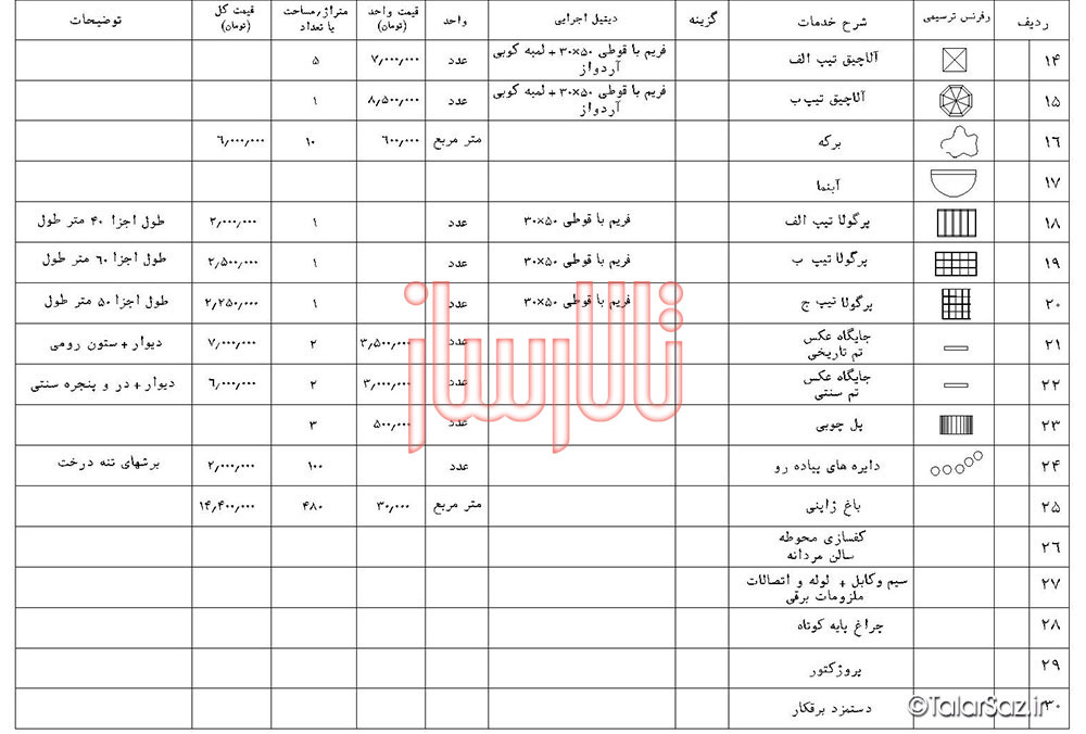 »» جدول قیمت احداث محوطه سازی: